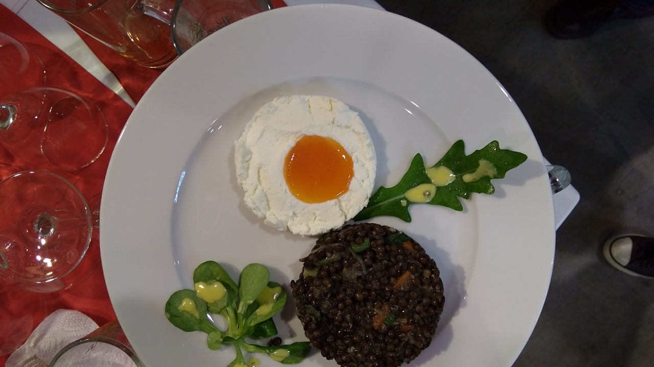 Vorspeise: Linsensalat mit Ziegenfrischkäse und Mango-Chutney